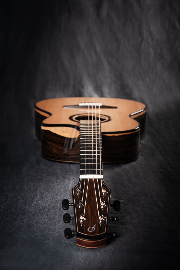 Cet instrument de format "classique" est destiné particulièrement aux musiciens "fingerstyle" voulant la précision et l'attaque d'une 14 frettes (au corps), tout en ayant la chaleur et le timbre d'une 12 frettes.
