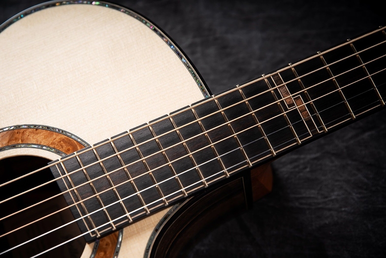 Fingerboard (radius 16”): Gaboon Ebony (with ebony binding and tiny maple purfling)