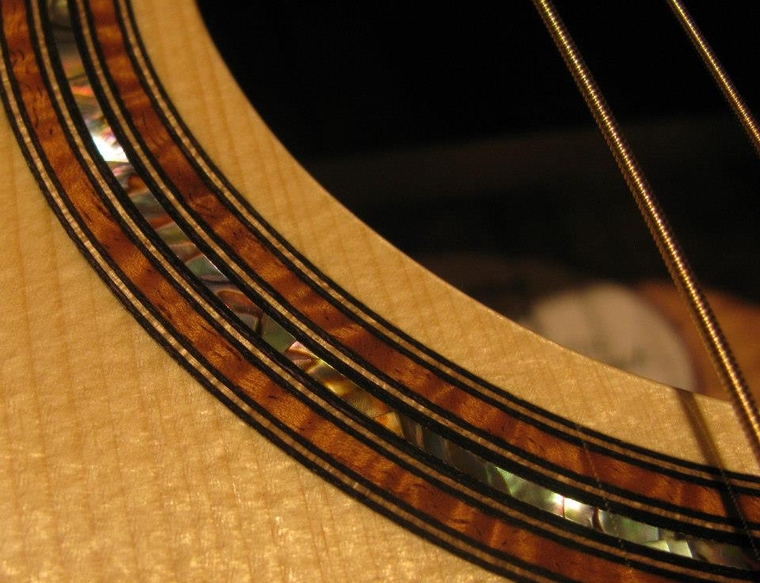Ébène du Gabon et contre-filet érable, contour d'érable ondé sur la table d'harmonie - Finition caisse :