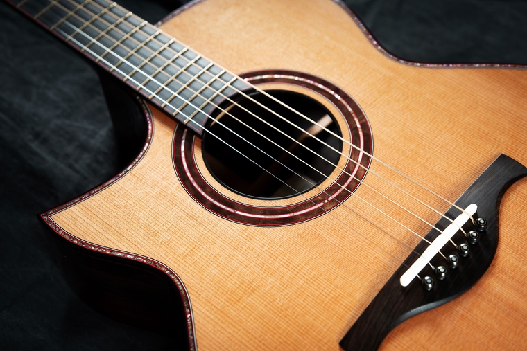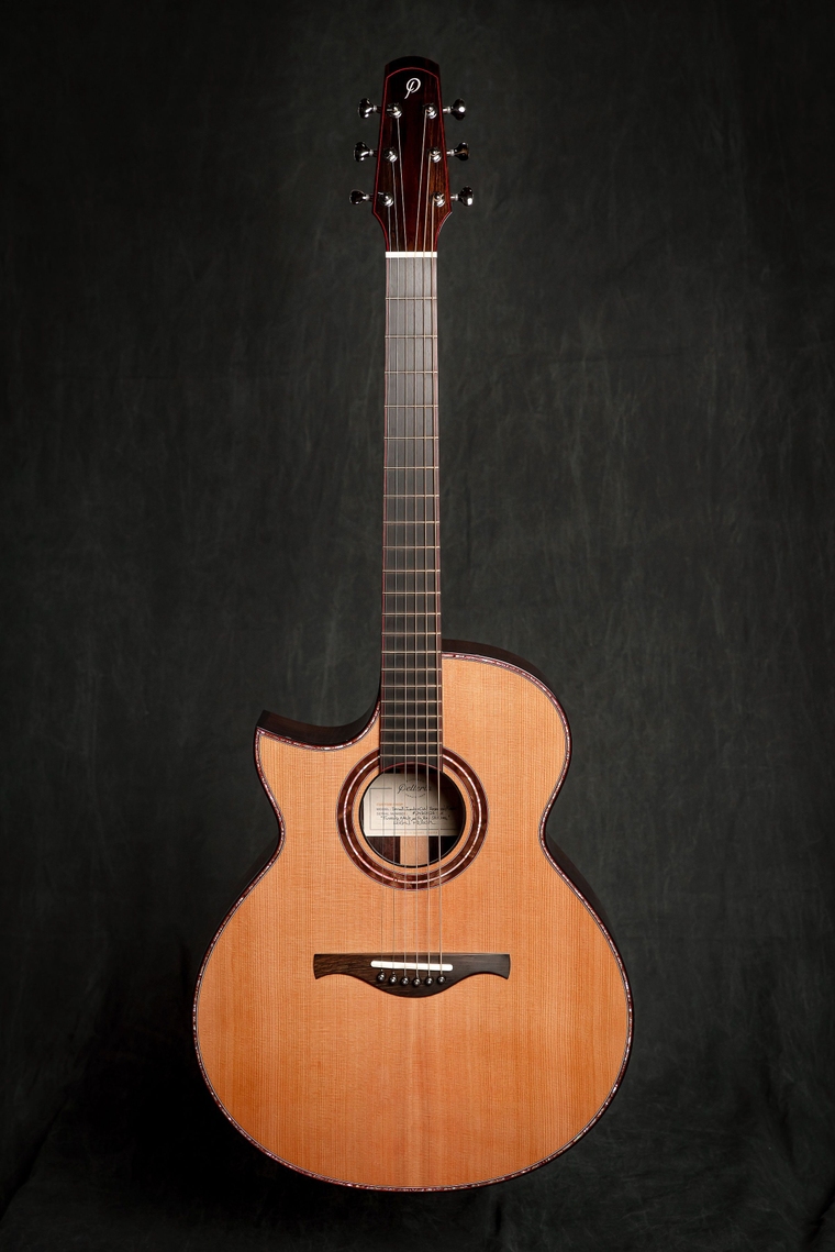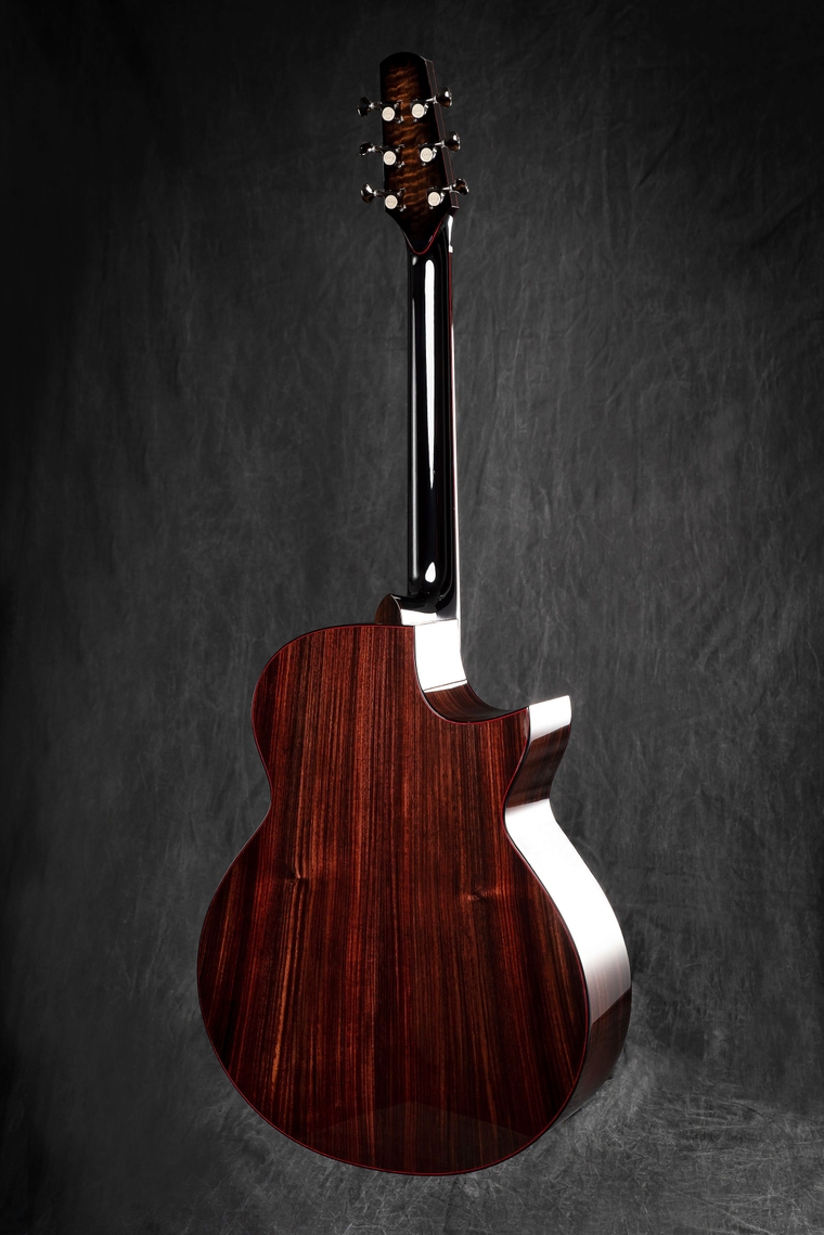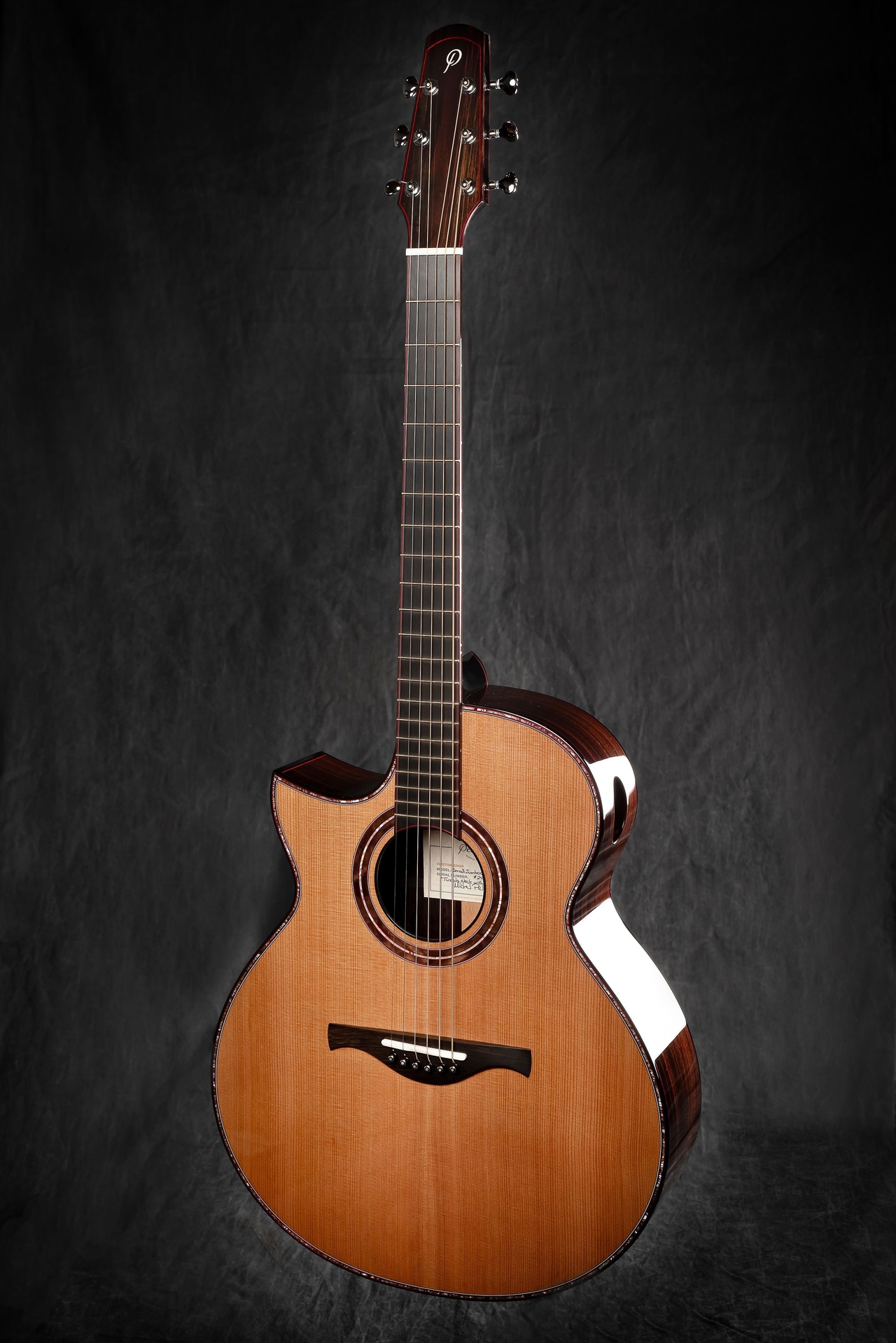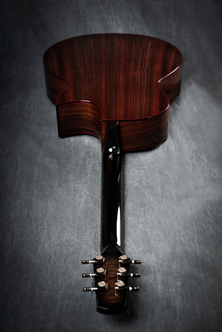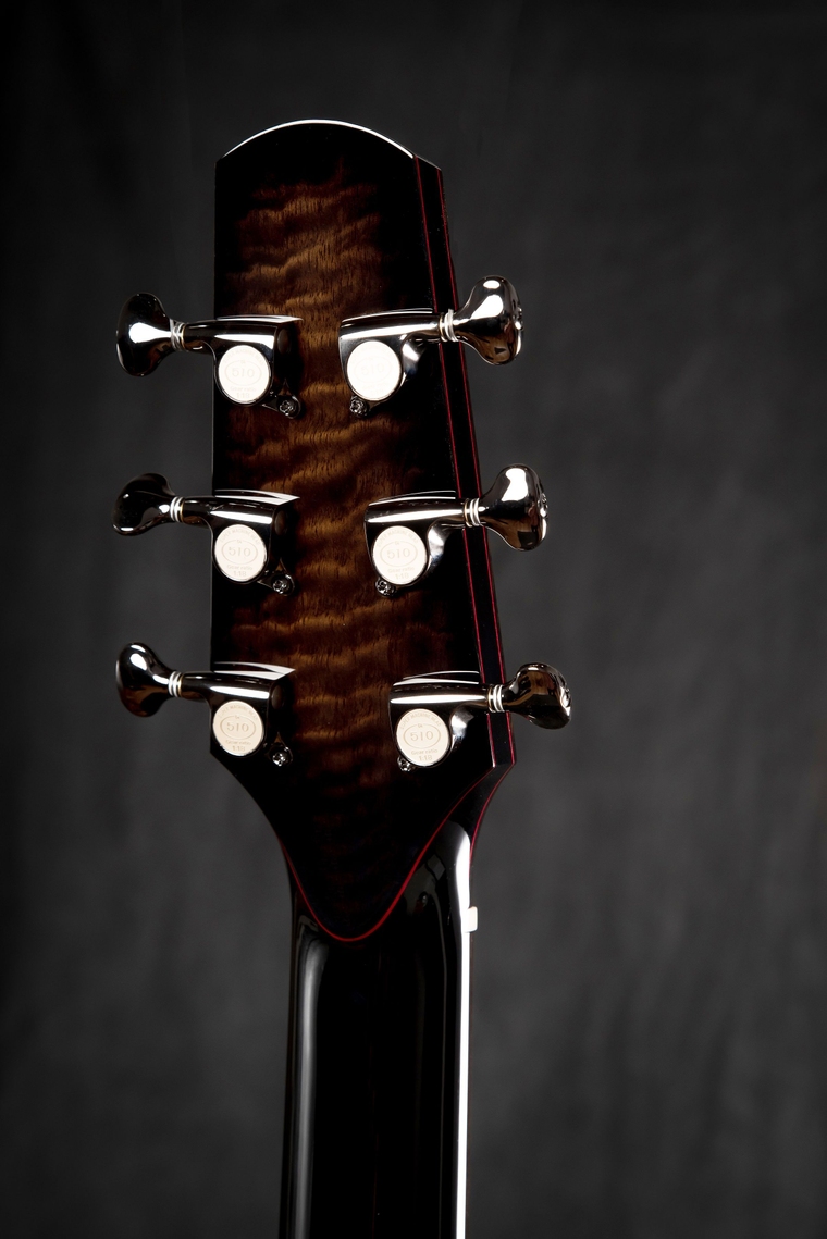 Cet instrument est spécialement conçu pour les joueurs "fingerstyle". Basses profondes et claires avec beaucoup de réverbération naturelle, médiums précis et aigus riches. Cet instrument gaucher est sensible à la plus légère attaque.