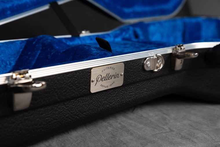 Poignée de transport moulée Hiscox, Logo Pellerin embossé dans le couvercle éfigie Pellerin en laiton chromé.